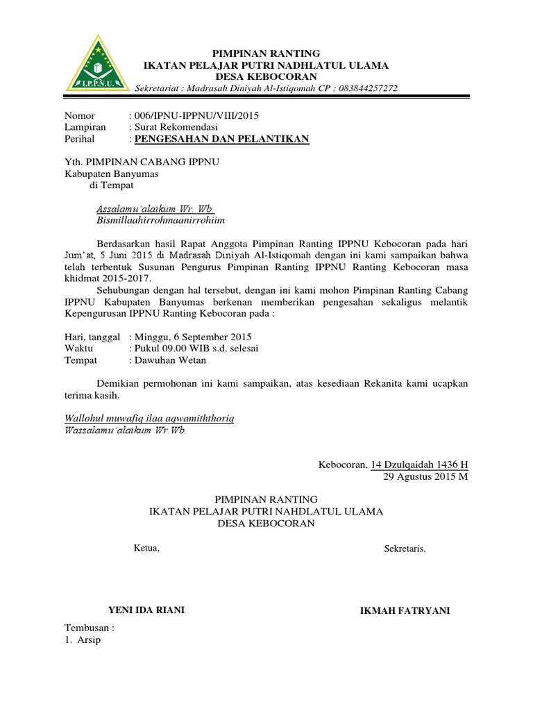 Uncategorized Contoh Surat Rekomendasi Nu Ranting Penjelasan lengkap seputar contoh surat penawaran yang baik dan benar Pembuatan surat rekomendasi tentu didasarkan akan penilaian terhadap kapabilitas maupun kinerja pemohon