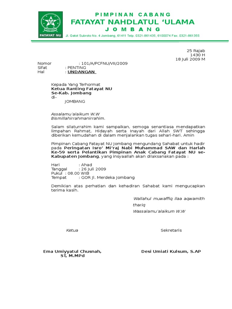 Kop Surat Nu Ranting Berikut salah satu contoh surat.